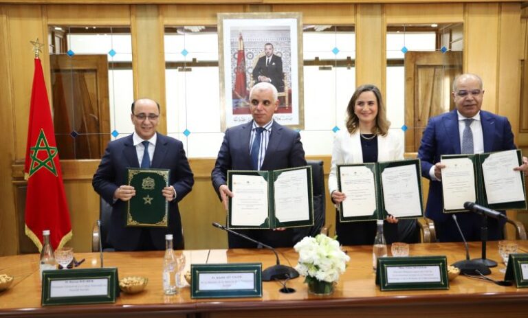 تم توقيع اتفاقية إطار للشراكة حول تبسيط الإجراءات المتعلقة برقمنة الملف الطبي المشترك وورقة العلاجات الإلكترونية بالمؤسسات الصحية.