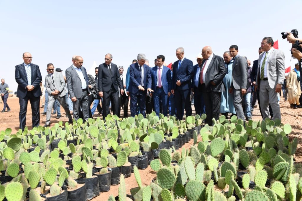 فعلى مستوى الجماعة الترابية نزالة العظم، قام الوزير بإعطاء انطلاقة الشطر الأول من أشغال غرس الصبار على مساحة 400 هكتار في إطار مشروع للفلاحة التضامنية الذي يهم تنويع أنظمة الإنتاج وتشجيع العمل الحر. يضم المشروع عدة مكونات منها غرس مساحة 2000 هكتار من الزراعات المقاومة للتغيرات المناخية (1500 هكتار من الصبار، 200 هكتار من الخروب، 100 هكتار من الأركان، 100 هكتار من القطف الاسترالي و50 هكتار من الكبار). ويشمل هذا المشروع أيضا تنمية سلاسل الإنتاج الحيواني وإنشاء تعاونيات خدماتية لفائدة الشباب القروي وخلق أنشطة مدرة للدخل لفائدة المرأة القروية.بتكلفة إجمالية قدرها 27.53 مليون درهم، سيستفيد من المشروع 950 من صغار الفلاحين كما سيمكن من خلق حوالي 110.000 يوم عمل سنويا.