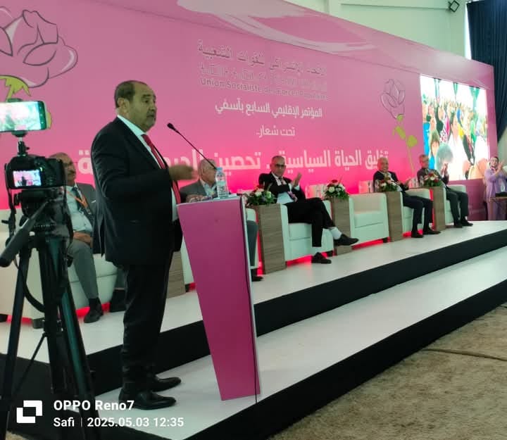 احتضنت مدينة اسفي صباح اليوم السبت، 3 ماي الجاري، أشغال المؤتمر الإقليمي السابع للاتحاد الاشتراكي للقوات الشعبية تحت شعار: ” تخليق الحياة السياسية تحصين للديمقراطية” وذلك برئاسة الكاتب الأول للحزب الأستاذ إدريس لشگر وبحضور أعضاء من المكتب السياسي وأعضاء من الكتابة الجهوية ومنظمة النساء الاتحاديات وأعضاء من الكتابات الإقليمية بالجهة والبرلمانيين والمستشارين الاتحاديين واعضاء المنظمات الموازية لحزب الوردة .