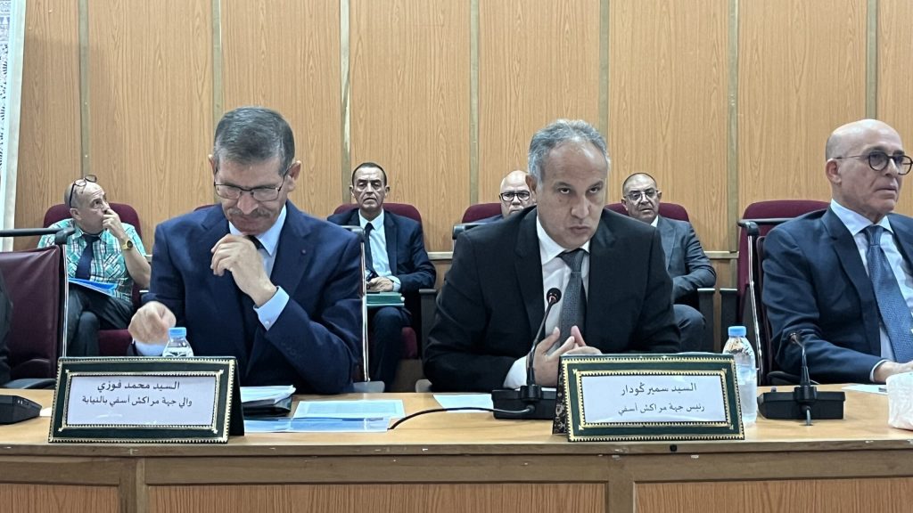 انعقدت صباح اليوم الاثنين، بمقر مجلس جهة مراكش آسفي، أشغال الدورة العادية لشهر أكتوبر 2025، برئاسة السيد سمير كودار، رئيس الجهة، وبحضور السيد محمد فوزي، والي الجهة، إلى جانب أعضاء المجلس وممثلي المصالح الخارجية والهيئات المنتخبة.وقد استهل المجلس أشغاله بتقديم تقرير إخباري، وذلك تطبيقًا لأحكام المادة 110 من القانون التنظيمي رقم 111.14 المتعلق بالجهات، بعد ذلك تم إطلاع المجلس على الدعاوى القضائية المرفوعة ضد الجهة.