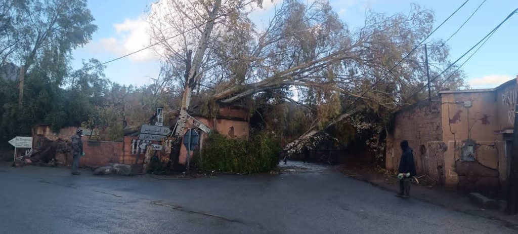 وبحسب ماعاينته الجريدة،فرغم التفاعل الإيجابي لساكنةالمنطقة مع النشرات الانذارية للمديرية الوطنية للأرصاد الجوية وانذارات السلطات المحلية،فإن قوة الرياح المصحوبة بالأمطار وتساقط الثلوج التي هبت على المنطقة،فان غضب الطبيعة كان أقوى من آليات الطوارئ،بعدما تسببت الرياح الهواء في اقتلاع عشرات الاشجارالمثمرة بمنطقة مريغة بجماعة ويرغان،ولاسيما اشجارالزيتون،مماكبد الفلاحين خسائر فادحة في المحصول السنوي لمادة الزيتون.