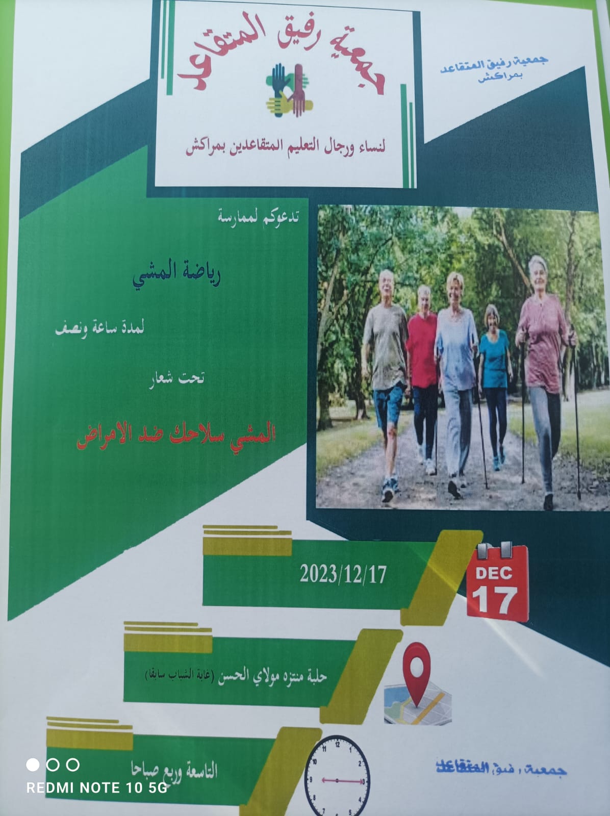 جمعية رفيق المتقاعد بمراكش تنظم نشاطا رياضيا تحت شعار:”المشي سلاحك ضد الأمراض”