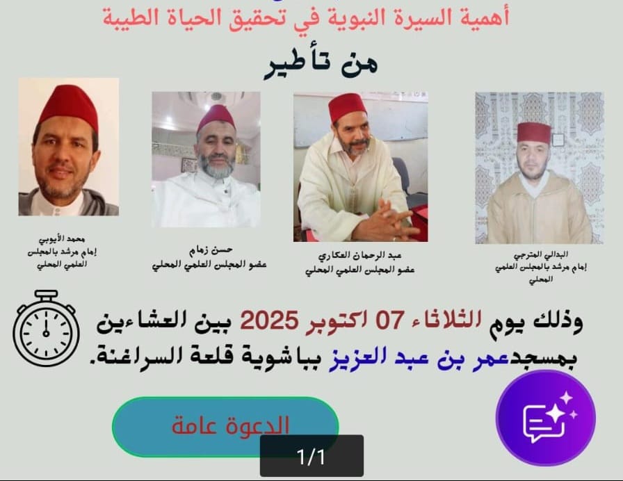 “أهمية السيرة النبوية في تحقيق الحياة الطيبة” موضوع ندوة للمجلس العلمي المحلي بقلعة السراغنة
